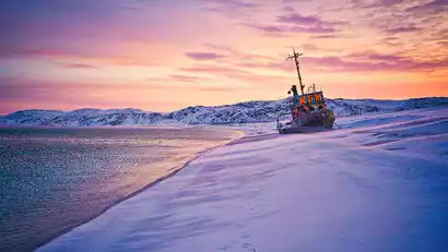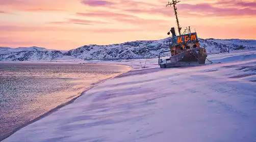 After breakfast, depart Murmansk and travel across the frozen wasteland to the small town of Teriberka, a settlement on the Arctic Ocean coast at the northern tip of Russia. It's truly "the end of the world" and was the primary filming location for the 2015 award-winning film "Leviathan."