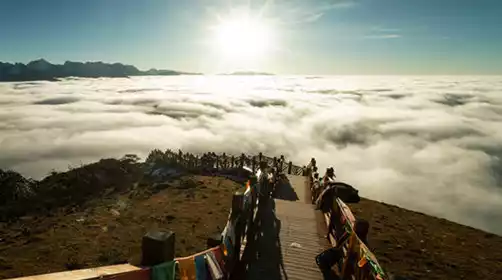 Depart at around 4-5 am (subject to staff notification, according to different sunrise times in different seasons/holidays/peak traffic periods, please inform the scenic spot in advance), take a tourist bus from the accommodation to the entrance of [Dawa Gengzha Scenic Area], then queue up to take the sightseeing bus to enter the scenic area, get off and walk for about 30 minutes (there are ATVs or private cars operated by locals on this section, please choose to ride with caution, at your own expense and at your own responsibility), reach the top of the mountain to watch the sunrise and sea of clouds, and appreciate the Tongtian Road under the starry sky. When the weather is good, every shot will be a blockbuster. At around 9 am, take the sightseeing bus back to the entrance of the scenic area (subject to staff notification time, please be sure to be punctual for team tours) and set out for lunch (30 yuan/person at your own expense), then return to Chengdu via Ya'an, normally arriving in Chengdu around 15:00, ending a pleasant journey (the disbanding location is uncertain, subject to the actual situation of the day, usually a subway entrance)