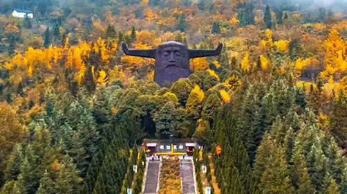 After breakfast, we'll head to Shennongtan. Shennongjia gets its name from the story of Shennong, one of the ancestor of the Chinese people, who built a wooden ladder here to sample herbs and save the people. Here, you'll find a statue of Shennong, depicting him with an ox-headed figure and a thousand-year-old cedar king. Standing amidst lush green mountains, Shennong's body formed by the earth, his eyes slightly closed, seemingly contemplating the mysteries of the universe. In autumn, Shennongtan, set against the backdrop of rustling fallen leaves, possesses a uniquely ancient charm.