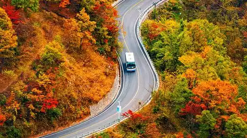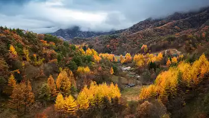 The lesser-known Shennongjia scenic area is flanked by three waterfalls, four villages, five pools, six caves, seven ridges, eight rocks, nine stones, and eighteen peaks. The forests here are a riot of color, with hued maples, tulip trees, sycamores, crabapples, walnuts, and chestnuts mingling with the evergreen vegetation. Like an oil painter accidentally knocking over a paint can, the colors flow along the mountain ridges, layer upon layer of fiery red, dazzling golden yellow, lush emerald green, and vibrant azure blue... a breathtaking sight.