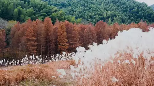 A must-see in Ningbo, the Metasequoia Forest offers not only redwoods but also the Reed Marsh, a major attraction. Beside the redwoods, clusters of reeds sway in the wind, creating a breathtaking beauty. Stroll along the lakeside, soaking in the autumn air and occasionally spotting flocks of lambs and soaring egrets. This is the perfect spot for enjoying autumn in Ningbo!