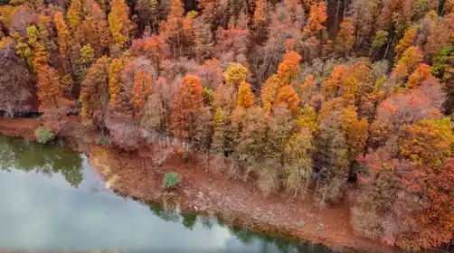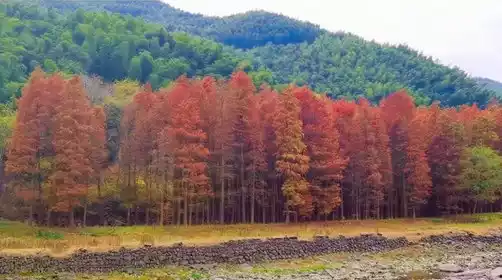 Tongjiao Village, at the source of Jiaokou Reservoir, is a great place to admire the vast redwood forest, stretching for several kilometers across the mountains. In late autumn, the leaves turn from yellow to red, scattering across the ground, blanketing the entire forest. The straight trunks stand tall and graceful, dotted with red maple and ginkgo trees, creating a scene reminiscent of an oil painting. This place is truly perfect for taking photos and videos, and every shot is a masterpiece.