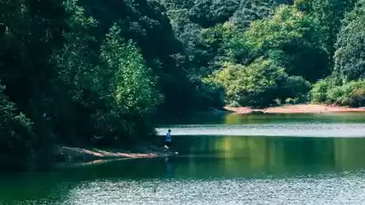 Around 2:30 PM, our tour guide arranged for us to take a boat tour of Jiuhua Tianchi Lake. Descending the mountain, we walked through the Glacial Stone Valley. The valley boasts well-preserved vegetation, abundant glacial boulders, clear springs, deep woods, and fresh air, creating a truly relaxing experience.