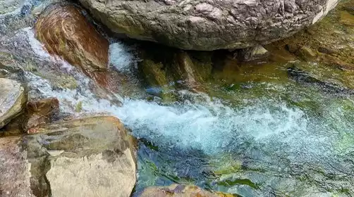 Around 12:00 PM, descend to the canyon floor, where water flows year-round. The valley is home to bizarre rock formations, rare flowers and plants, and seven or eight waterfalls. This area, known as the Soul of the Taihang Mountains, boasts picturesque mountains, unique rocks, clear water, lush forests, and secluded pools. The legendary glass-like waters are also found here. If you're not afraid of the cold, enjoy a dip and a refreshing swim.