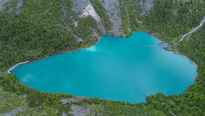 At 4,100 meters above sea level, Jiayilacuo Lake lies in a valley north of Hulu Lake, administratively under the jurisdiction of Karza Village, Qimei Township, Daofu County. Jiayilacuo Lake boasts a breathtaking blue hue, resembling a giant turquoise. Surrounded by forests and snow-capped mountain pastures, it boasts lush green grass in summer and vibrant colors in autumn, creating a picturesque scene.