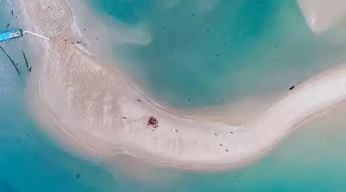 Journey to the hidden gem of the sea, Fishbone Sandbar. This magical spot sinks with the tide and emerges with the ebb. At low tide, collect shells on the sandbar as the clear water surges up from both sides, offering a thrilling experience of being surrounded by the ocean. At high tide, the water reaches your ankles, and walking on the waves feels like floating in the water.
