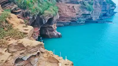 After lunch, your butler will guide you on a tour around the island, exploring every hidden corner of Weizhou Island. You'll visit the picturesque Ring Road, the Catholic Church, Shell Beach, the Blue Bridge, and more. Then, you'll visit Dishui Danping, where layers of sea erosion and verdant vines crisscross the landscape. The sand here is clean and soft, stretching from the lighthouse to Shiluokou. In the evening, arrive at Shiluokou Beach, stroll along the soft sand, and enjoy the slow pace of life on the island, waiting for the sunset and the returning fishermen.