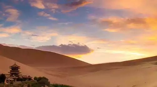 In the afternoon, we'll travel to Dunhuang, a crucial hub along the ancient Silk Road. With its rich history and rich culture, as well as its breathtaking scenery, we'll experience the prosperity of the Silk Road. For thousands of years, the Crescent Moon Lake at Mingsha Mountain has been a place where "mountain and spring coexist, and sand and water coexist." Never buried by sand, Crescent Moon Lake is known as the "Eye of the Desert."