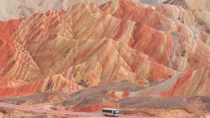 Zhangye's Colorful Danxia, a rare and unique landform in northern China's arid regions, boasts a unique and exceptional landscape. Due to alternating wet and dry climates, a variety of rocks were deposited in a basin at the northern foot of the Qilian Mountains. Following uplift, natural erosion shaped the colorful Danxia landscape. The undulating, multicolored mountains appear like rainbows emerging from the earth, like ribbons woven around the mountain ridges.