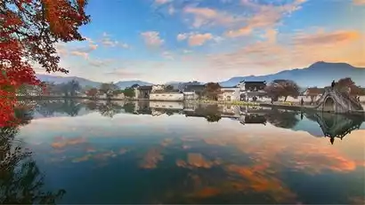 Arriving at Hongcun around 2:30 PM, everyone was assigned their rooms. After purchasing their tickets at the entrance, everyone was free to explore the area or share their meals. A must-see for any visitor to Yixian County, Hongcun is much less crowded in autumn than in spring and summer, making it a quiet and relaxing place to explore. Entering through the west gate, you'll see Nanhu Lake, the filming location for the horse-crossing bridge in Ang Lee's film "Crouching Tiger, Hidden Dragon." With mountains in the background and a small bridge over a pond nearby, this graceful Jiangnan landscape is a never-ending sight. Yuezhao, located in the center of the village, is shaped like a half moon, symbolizing the blooming and falling of flowers, the waxing and waning of the moon. White walls and black tiles are reflected in the clear water, and many of the iconic photos of Hongcun that have gone viral online were captured here. Visiting early in the morning or at sunset is recommended for photos. Around 8:00 AM, you can even see the faint morning mist. After dinner, you can explore the ancient village on your own. The night view of Hongcun is also truly breathtaking (Hongcun tickets include multiple entries).