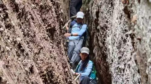 Reach the top of the iron rope on the left and right, hold on firmly, climb in an orderly manner, and go down the mountain after enjoying the top view to explore the secret of the Tiantian Ladder