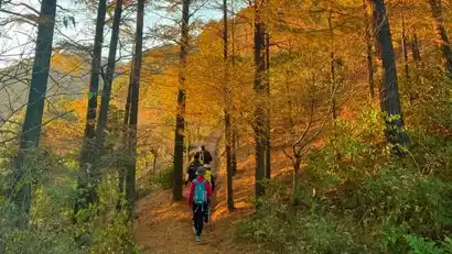 Around 11:30, we arrived at the starting point of today's hike, Xihutou Village. After getting off the bus and warming up, we began our hike under the guidance of our leader! This route is a circular route. After passing through the village, we entered the mountains. The fallen leaves on the ground gave us a feeling of walking on a golden road.