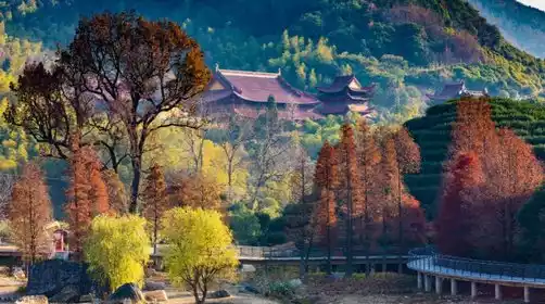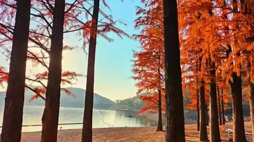 Around 11:00 AM, we arrived at Lunu Lake. In autumn, the lake's emerald waters ripple, reflecting the vibrant colors of the mountains and forests. We followed the plank path around the lake, weaving through the Metasequoia forest, capturing the essence of autumn. (The tour lasts approximately 1-1.5 hours.)