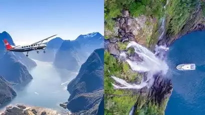 Visit Milford Sound without the hassle of waking up early or staying an extra night. Departing from Queenstown, we'll arrange a round-trip tour by small plane and catamaran, allowing you to explore the area on the same day! Get ready for an unforgettable air and sea adventure! Capture breathtaking views of forests, valleys, and alpine lakes from above during this 35-minute flight. Witness incredible scenery, including majestic fiords, canyons, glaciers, and the iconic Mitre Peak. Transitioning from sky to sea, a special alpine landing adds a unique touch as you embark on a catamaran cruise to explore the wonders of the fiord. The misty fiords create a magical atmosphere, offering breathtaking views of cascading waterfalls and stunning views of rivers. And don't forget to keep an eye out for rare animals like fur seals, dolphins, whales, and penguins. After the cruise, return to Queenstown by small plane. This journey promises breathtaking scenery and unforgettable experiences! (Note 5)