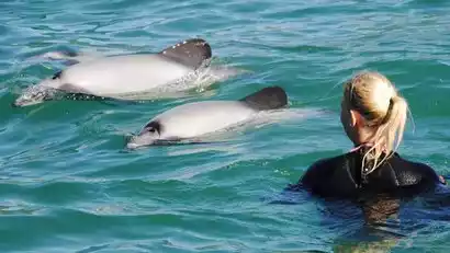 New Zealand boasts a stunning ecosystem, with dolphins frequently swimming in its waters. If you've ever dreamed of playing with dolphins, Akaroa is the place for you. Here, you can get up close and personal with the playful Hector's dolphins, known for their warm and friendly leaps and aerial flips. We'll embark on a boat tour, don professional snorkeling gear, and "Swim with the Dolphins" in these waters. Sometimes they'll make eye contact, sometimes they'll playfully play around you—it's an exhilarating and unforgettable experience!