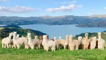 As a country with more sheep than people, New Zealand boasts abundant pastures. We'll visit New Zealand's most beautiful alpaca ranch, nestled on a hillside amidst stunning lakes and mountains. You'll have the opportunity to pet the alpacas, guide them into their pens, and get up close and personal with the charming creatures, learning about the beauty and allure of alpaca wool. You can also take photos while gazing at the picturesque Akaroa Bay. The ranch's barn offers drinks and homemade cookies, while the alpaca shop sells a wide selection of handmade New Zealand alpaca products.