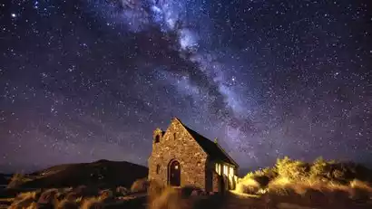 Located on the shores of Lake Tekapo, the Church of the Good Shepherd, named after a statue of a sheepdog, boasts a pristine, stone-built structure and is a signature feature of Lake Tekapo. At night, the church, under the starry sky, is even more breathtaking, creating a sense of cosmic wonder. Standing in complete darkness, gaze up at the twinkling starry sky beside the church, where you'll witness unique astronomical phenomena only seen in the Southern Hemisphere, including the Southern Cross, the Magellanic Clouds, and satellite galaxies of the Milky Way. With a bit of luck, you might even catch a glimpse of a shooting star streaking across the night sky.