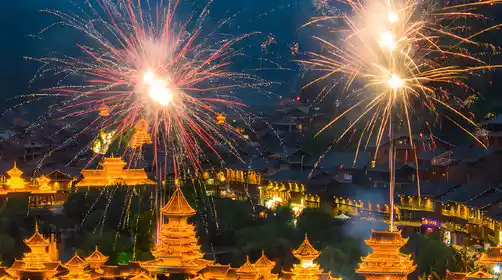 On the fifth day of the first lunar month, every corner of Zhaoxing Dong Village is filled with festive joy, and every folk activity carries the Dong people's beautiful hopes for the New Year. On this day, visitors can not only enjoy a variety of folk performances and savour authentic Dong cuisine, but also immerse themselves in the unique charm of Dong culture and experience the warm hospitality of the Dong people. As the New Year's bells fade, Zhaoxing Dong Village remains thriving with its unique folk celebrations. Specific activities are subject to local arrangements and may be adjusted according to weather conditions.