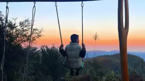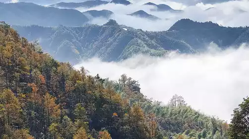 There is a long ridgeline behind, reaching the top of Donggang Mountain. On the way down the mountain, there are tea plantations, forests, streams, and stone slabs, which are rich in scenery and relaxing.