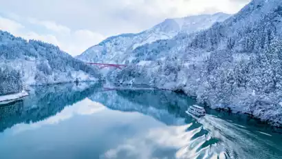 Located in Toyama Prefecture, a region rich in natural beauty, the Shogawa Gorge is known as "the last hidden gem of the Japanese archipelago." We'll board a boat from Komaki Port and cruise to Nagasaki Bridge. The unobstructed glass of the boat allows for unobstructed views even from indoors in winter, allowing you to experience the breathtaking scenery of the Shogawa Gorge up close.