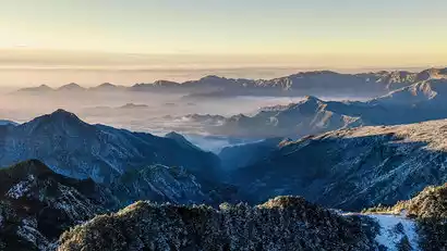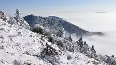 Overlooking the snowy forest and the beautiful mountain scenery of Shennongding