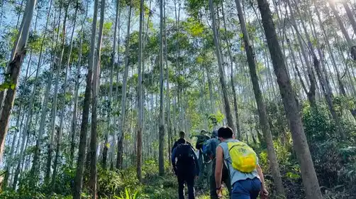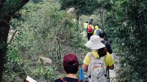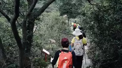 Arriving at the starting point of the hike, the leader will lead the warm-up, and then set off, crossing the village and entering the woods to climb the trail.