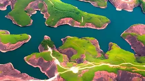 Shuangqiao Reservoir is known as the real-life "Zelda" game world in Hunan. It only reveals its mountains and water during the dry season (January to March each year), presenting the Danxia landform that is billions of years old. At other times, the canyon is hidden beneath the calm water surface.