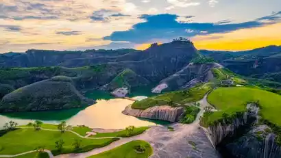 Visitors can traverse the trails, feeling the texture of the rocks up close, and ascend to a height for panoramic views of the mountains and rivers. The interplay of the red sandstone and emerald green waters of Monitor Lizard Lake creates a striking visual impact. The Dragon's Back Ridge, resembling a winding dragon with its exposed back and steep cliffs on either side, offers a thrilling and adventurous experience.