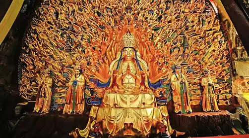 Afterwards, we will visit the World Cultural Heritage [Dazu Baodingshan Rock Carvings] (about 2 hours) to admire the large-scale cave sculpture art from the late Tang Dynasty in China. The Baodingshan cliff sculptures were first carved during the Southern Song Dynasty. Within a 500-meter radius, there are Buddha statues carved on the rock. The most famous ones are the Six Paths of Reincarnation, the Guangda Baoge Tower, the Huayan Three Saints, and the Thousand-Armed Guanyin. It is an artistic treasure of Chinese stone carving art that integrates Buddhism, Confucianism, and Taoism.