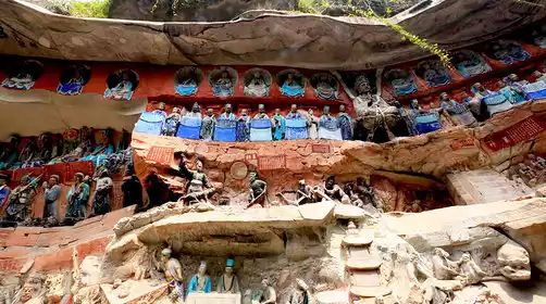 We'll pick you up from Chongqing's main business district between 7:00 and 7:30 AM. Our first stop will be the Dazu Beishan Rock Carvings. The Beishan cliff carvings date back to the late Tang Dynasty and continued through the Southern Song Dynasty. Located 2 kilometers north of Dazu District, the carvings are located on Beishan Mountain. Centered around Dafo Bay, they encompass five locations: Guanyin Slope, Yingpan Slope, Foer Rock, and Beita Temple. The cliffs stretch over 500 meters, each about 7 meters high. Sculptures are carved along the cliffs. From south to north, the cliffs are shaped like a crescent moon, with niches resembling beehives. There are over 5,000 statues.