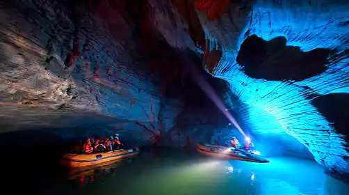 There are strange stone shapes that resemble diamonds, secret passages that extend downwards layer by layer, and incredible underground river passages.