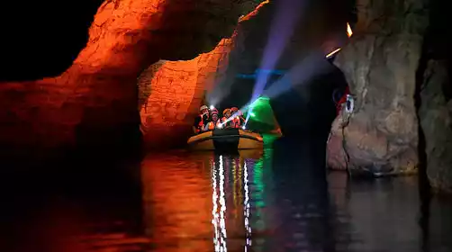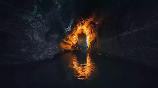 Take a kayak on the dark river to travel through the light and shadow, then transfer to a ferry to cross the darkness
