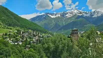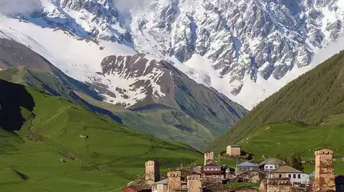 Nestled in the Caucasus Mountains at an altitude of 2,200 meters, Ushguli Village is Europe's highest village, renowned for its numerous medieval defensive towers. Surrounded by rolling snow-capped mountains, gurgling rivers, and herds of cattle and sheep, it feels like a paradise, allowing visitors to experience the simple nature of Georgia's mountain people. Despite its limited accessibility, Ushguli Village has preserved a timeless sense of place and timelessness. Ushguli Village and Upper Svaneti are both UNESCO World Heritage Sites.
