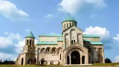 Photograph the "Tiffany Blue" Bagrati Cathedral, built at the beginning of Georgia's Golden Age. The cathedral is situated on Ukmeriona Hill, offering panoramic views of the city of Kutaisi.