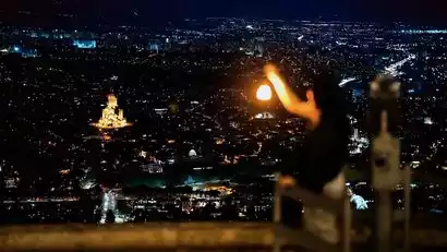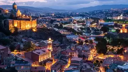 After dinner, tourists will take a mountain train to and from the mountains surrounding Tbilisi. Climbing along the steep track, they'll enjoy a nighttime view of Tbilisi's old town.