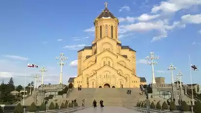 Upon arrival in Tbilisi, we visited the Holy Trinity Cathedral, the third largest Orthodox church in the world. Its striking golden dome is indeed made of gold, donated by Georgians. This cathedral is easily visible from either side of the Kura River in Tbilisi, and its interior is unpretentious. It's important to note that women should wear long pants or below-the-knee skirts for easy access.
