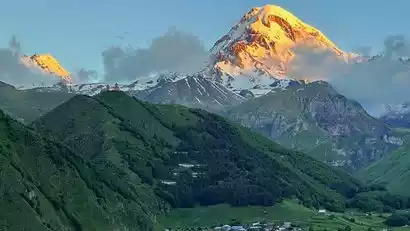 After arriving in Kazbek, we'll board a 6-7-seater minivan and head to the Holy Trinity Church on the mountain, where photographers can freely explore. The church offers panoramic views of Kazbek, with the entire village at your feet, allowing you to experience the magnificent Caucasian scenery. Long ago, Georgian legend tells of a god similar to Prometheus who stole divine fire from heaven and brought it to Earth. As punishment, the gods imprisoned him in a cave on the top of Mount Kazbek.
