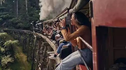 Puffing Billy Steam Train: Embark on an adventure filled with surprises aboard the Puffing Billy steam train. Traverse the picturesque Dandenong Ranges and experience the charm of travel a century ago, like stepping into a fairytale. The unique feature is that you can rest your feet on the outside of the train. Magic Harry returns!