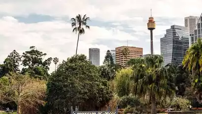 After lunch, stroll through Sydney's Royal Botanic Gardens. From the gardens, you can overlook the Sydney Harbour Bridge and Sydney Opera House in the distance. This combination constitutes one of Sydney's most famous views and is a great spot to take iconic photos of Sydney. Mrs. Macquarie's Chair is a classic element that often appears in travel guides.