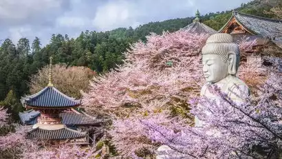 After breakfast, we'll depart for Tsubosaka-dera Temple for a photo tour. The temple boasts a well-organized layout, dotted with expansive clusters of Somei Yoshino cherry blossoms, which complement the pagodas and the throngs of worshippers, creating a breathtakingly beautiful scene. The temple also boasts a large statue of Sakyamuni Buddha, the "Sakura Buddha," a uniquely Japanese creation. After the photoshoot, we'll head to Tsubosaka-dera Temple for lunch (at your own expense).