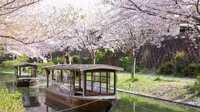 We then headed to Fushimi's Jushibune cherry blossoms. Fushimi, a renowned sake brewery and ancient waterside village, is now a popular spring destination thanks to the cherry blossoms lining its rivers. Jushibune boats, used to transport sake, rice, and other supplies, were a primary means of transportation during the Edo period. We cruised along the shore (without boarding the boat), following our photography guide to find angles to capture the captivating scene of the wooden boats entering the world of cherry blossoms.