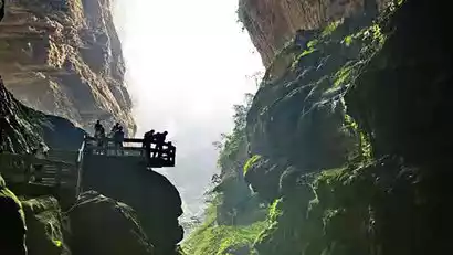 After breakfast, we'll depart for the Wulong Tiankeng Ground Fissure, a World Natural Heritage Site, via a scenic area shuttle bus. We'll begin our "Movie Tour" (minimum 2.5 hours) at the Tiansheng Sanqiao entrance. We'll choose to descend the tiankeng via elevator or on foot, with a visit to the glass viewing platform along the way (at our own expense). At an appropriate time, we'll transfer to the scenic area shuttle bus to visit the Longshuixia Ground Fissure, a quintessential karst canyon, stretching 4 kilometers (minimum 1 hour).