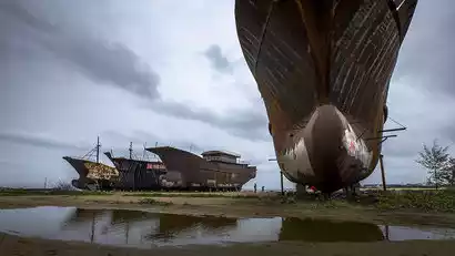 After breakfast, take photos of the abandoned shipyard in Haikou