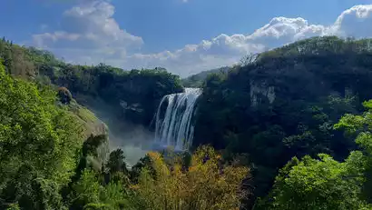 First, take the escalator to visit the Huangguoshu Waterfall, which is not only the largest waterfall in China, but also one of the world's famous waterfalls. It is famous for its huge water flow and diverse viewing angles. The waterfall is 77.8 meters high and 101 meters wide.