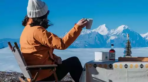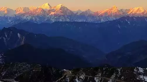 The staff will inform you of the sunrise time according to the season. You can choose to go to the [3666] platform to enjoy the sunrise over Niubei Mountain and the sea of clouds. The sun shining over Jinshan Mountain seems to be just around the corner. Above the clouds, Gongga Snow Mountain exudes the majestic grandeur of the Shu Mountains.