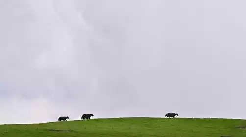 After simply packing up, we walked about 3km along the village's mechanized farming road to reach the lake on the ridge of [Lorjirang].