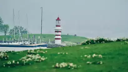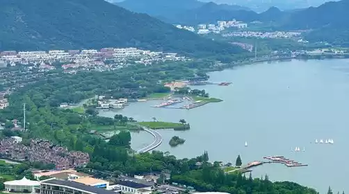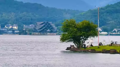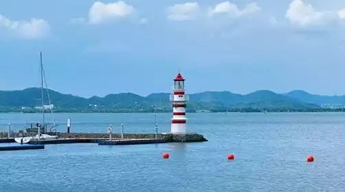 Or you can go to the shore of Dongqian Lake and check in the red lighthouse, which is full of atmosphere. You can also walk slowly to check in the Hanling Art Museum, an architectural work by Kengo Kuma. It is very photogenic. You can take some photos and daydream here. The bus is waiting for us not far away.