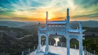 Legend has it that this is where Feng Hou, Huangdi's sage minister, invented the compass and defeated Chi You. After Feng Hou's death, Huangdi buried him at the site of his battle, which he named Fengling. Hence, the ferry crossing is known as Fengling Ferry. The Yellow River winds its way through the mountains to Tongguan, where it turns eastward due to the obstruction of Mount Hua. Fengling Ferry is situated right at the turning point, a crucial transportation hub for Shanxi, Shaanxi, and Henan provinces, and the largest ferry crossing on the Yellow River. Fengling Ferry is particularly well-known thanks to Jin Yong's martial arts novel, The Return of the Condor Heroes. In the past, Guo Xiang, listening to a night talk at the ferry inn, met Yang Guo, and her life was marked by their fate. (BGM: Joy is joy, parting is bitter, and even among them are foolish children... You should have a word, Vast clouds stretch thousands of miles, snowy mountains at dusk, to whom does your lone figure go?) On a clear day, watching the sunset over the Yellow River from this spot is a truly special experience.