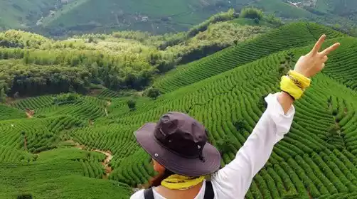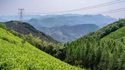 We followed the ancient trail to the summit, where a pavilion stood. In front of the pavilion lay a large valley, embracing the Xiamu Mountain Reservoir, fed by mountain spring water. To the west of Wanshou Pavilion stood the thirteen-story Jinling Thousand Buddha Pagoda. Down the slope to the north lay Yunlin Zen Temple, and to the east, Gucheng was visible. We paused here for a short rest before continuing our journey. Descending along the ancient trail, the mountain twisted and turned, lush trees filled the air, and birdsong filled the forest. Soon, we reached the winding mountain road, where endless tea fields stretched before us. After about 20 minutes of winding along the road, we entered the fascinating bamboo forest hiking section. Time flies when walking through the bamboo forest paths.