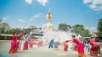 After lunch, we'll rest briefly before setting off on foot. Bring your own water splashing gear and join the water splashing carnival in Menglian County. Along the way, everyone you meet, whether you know each other or not, splashes water enthusiastically, wishing each other well. Their smiles reflect the festive joy. You can join a group or go it alone, splashing water all the way to Nayun Square.
